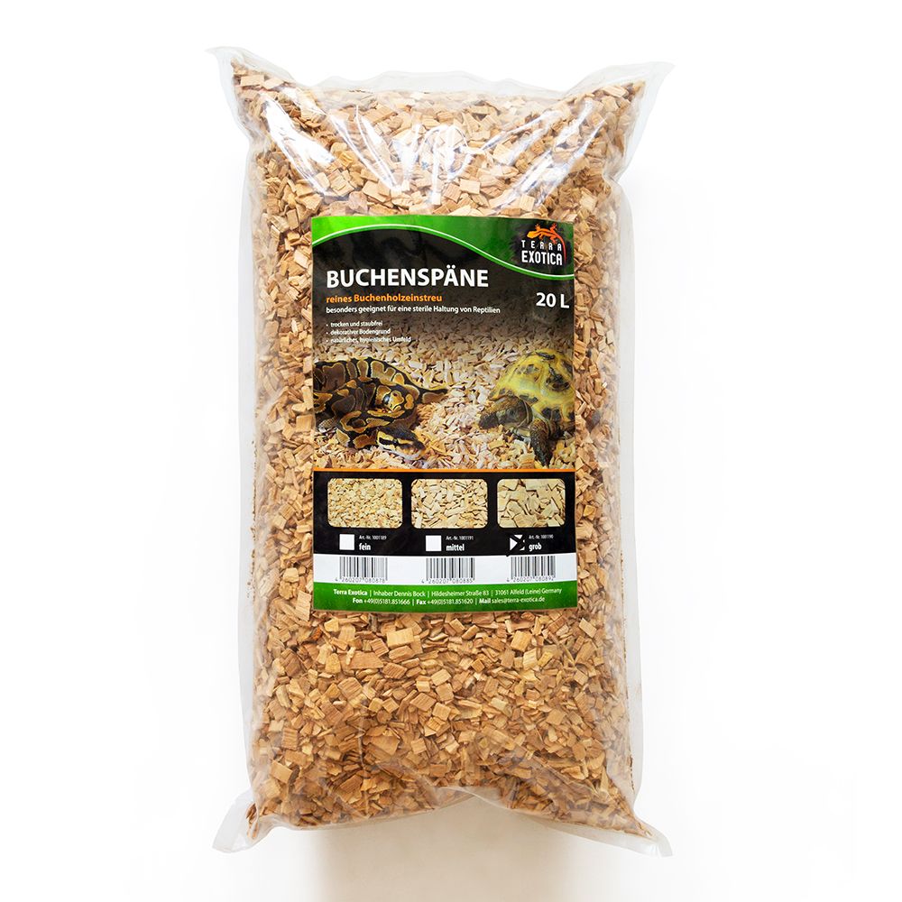 Das Terra Exotica Buchenrundholz Substrat – Fein ist ein 100 % natürliches Bodensubstrat mit einer Körnung von 3-10 mm, das sich ideal als dekorativer und hygienischer Untergrund im Terrarium eignet. Es wurde speziell für Schlangen, größere Echsen, Vögel und ausgewählte Kleintierarten entwickelt.
