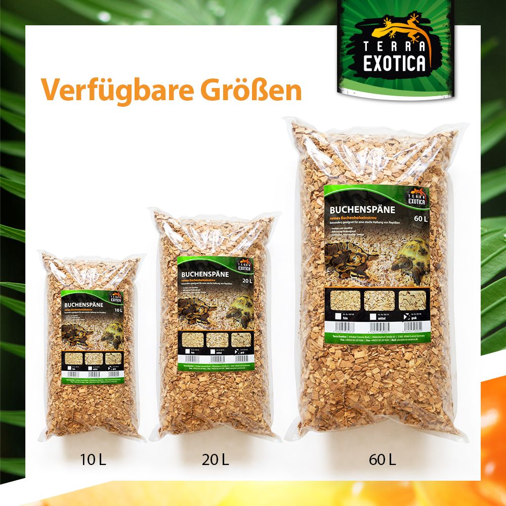Durch die trockene, staubfreie Beschaffenheit eignet sich das Substrat besonders für Reptilienarten, die keinen feuchten Bodengrund benötigen, und unterstützt eine sterile und saubere Haltung. Das naturbelassene Buchenrundholz sorgt für ein natürliches, wohlriechendes und optisch ansprechendes Terrarienumfeld.