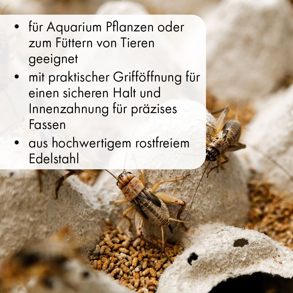 Die Edelstahl Futterzange – Gerade mit Arretierung ist ein hochwertiges Werkzeug für Terrarien- und Aquarienliebhaber. Sie ermöglicht präzises, sicheres Arbeiten beim Füttern oder Platzieren von Pflanzen und kann dank der integrierten Arretierung in der gewünschten Position fixiert werden.