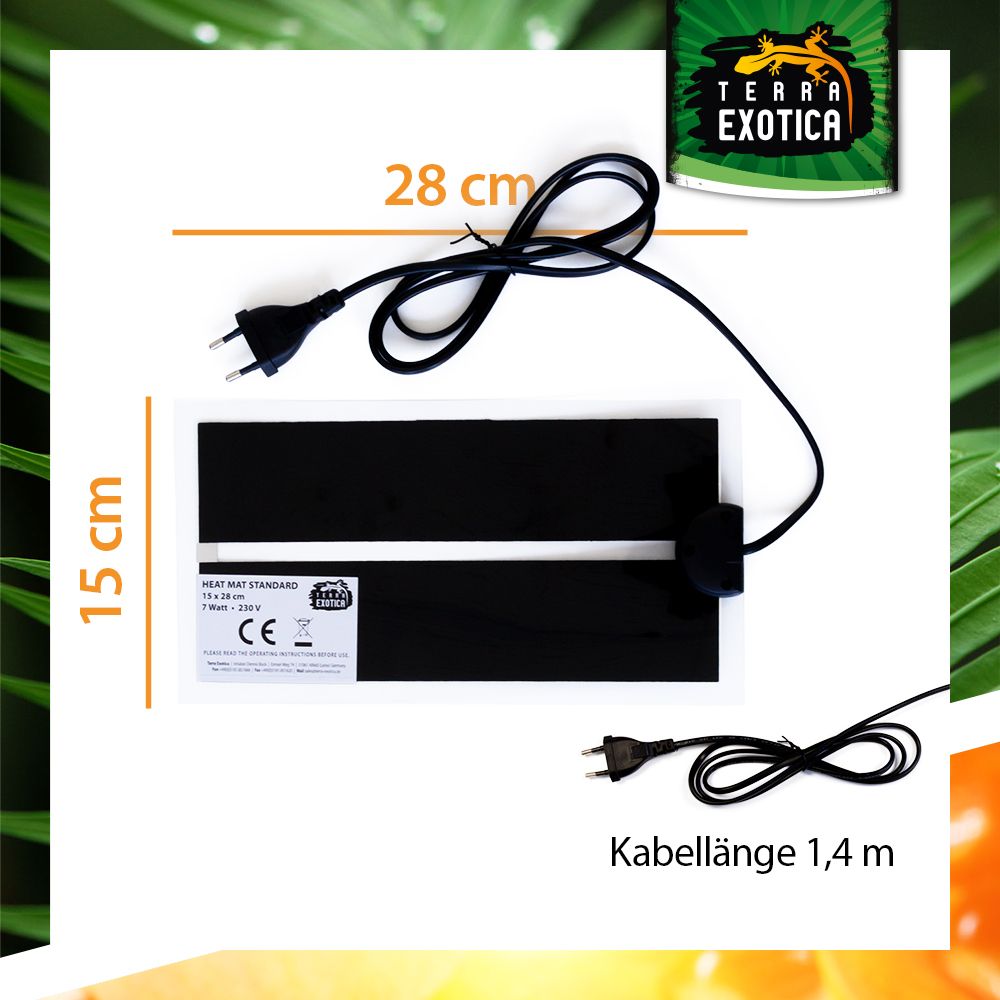 Die Standard Heizmatte bietet eine zuverlässige und konstante Grundheizung für Terrarien. Sie simuliert den durch die Sonne erwärmten Bodengrund und sorgt für eine angenehme, gleichmäßige Wärme – ideal für Reptilien, Amphibien und andere Terrarientiere. Durch ihre trockene Oberfläche erhöht sie die Luftfeuchtigkeit nicht und ist somit besonders für trockene Lebensräume geeignet.